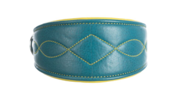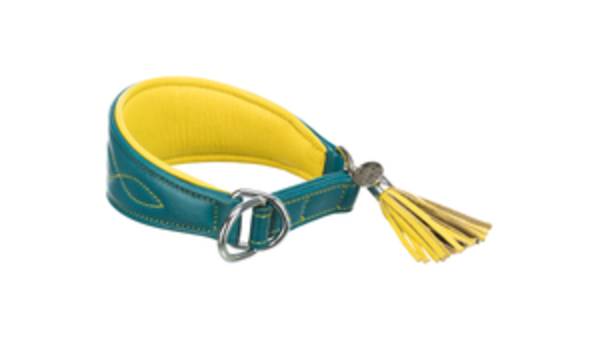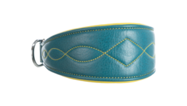 Active Comfort Halsband für Windhunde, Leder S: 27–35 cm/55 mm petrol/gelb