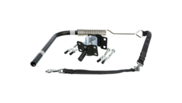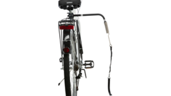 bestehend aus Abstandhalter mit Befestigung für Sattelstange, Anleinsystem und Spiralfeder