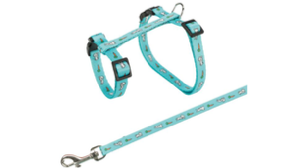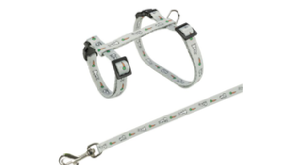 Geschirr mit Leine, Kaninchen, Hasen-Möhren-Motiv 25–44 cm/10 mm, 1,25 m