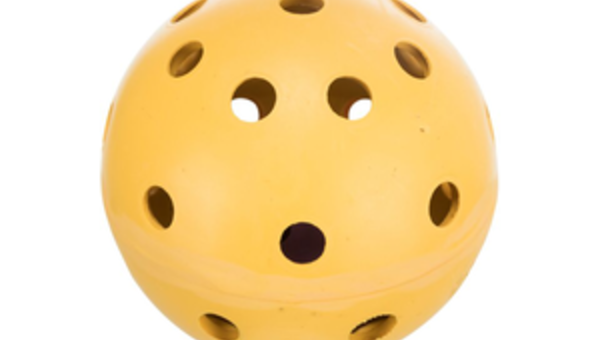 Lochball mit Schelle, Naturgummi ø 7 cm gelb