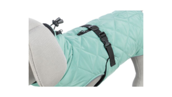 • mit zwei wasserdichten Reißverschlüssen zum Anleinen an Halsband bzw. Geschirr