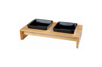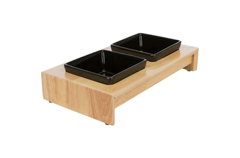 Napf-Set, Keramik/Holz 2 × 0,4 l/13 × 13 cm/36 × 7 × 19 cm schwarz/hellbraun