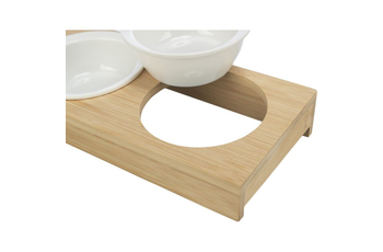 Napf-Set, Keramik/Bambus 2 × 0,8 l/ø 16 cm/39 × 8 × 20 cm weiß/natur