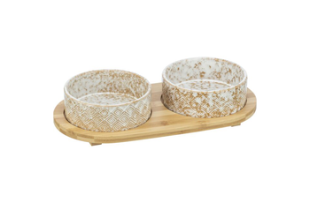 Napf-Set, Keramik/Bambus 2 × 0,25 l/ø 12 cm/30 × 5 × 14 cm weiß/hellbraun