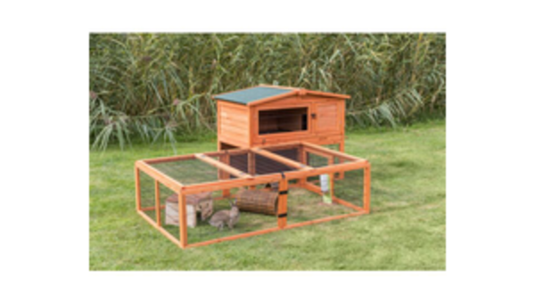 natura Kleintierstall mit Freilaufgehege 124 × 102 × 78 cm braun