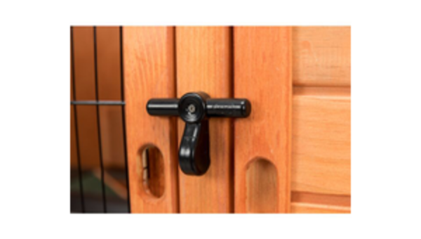 • doppelte Verriegelung der Gittertüren verhindert ein Eindringen von Fressfeinden
