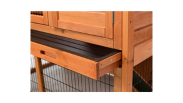 Unsere Kleintierställe und Gehege sind mit einer ungiftigen Lasur behandelt und somit optimal gegen Verwitterung geschützt. Um diesen Schutz aufrechtzuerhalten, empfehlen wir, das Holz alle 1-3 Jahre mit einer ungiftigen Holzlasur oder -farbe (auf Wasserbasis, für den Außenbereich geeignet) zu streichen.