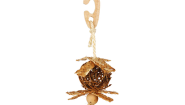 Weidenball am Seil mit Nistmaterial ø 5,5 × 15 cm